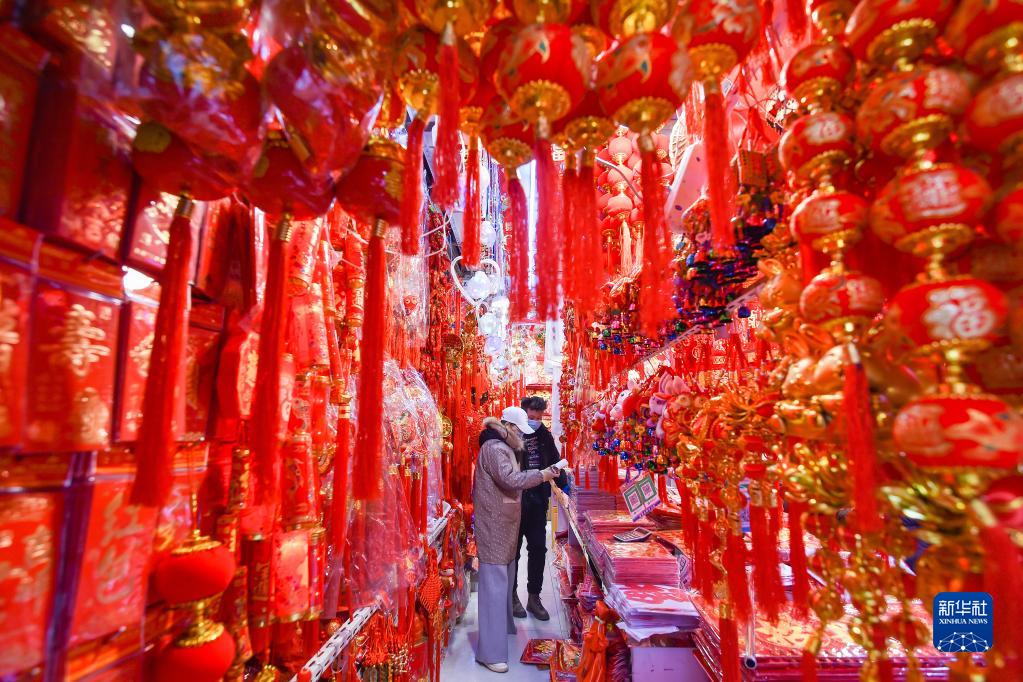 12月29日,人們在江蘇省南京市一家小商品市場(chǎng)選購新年飾品。