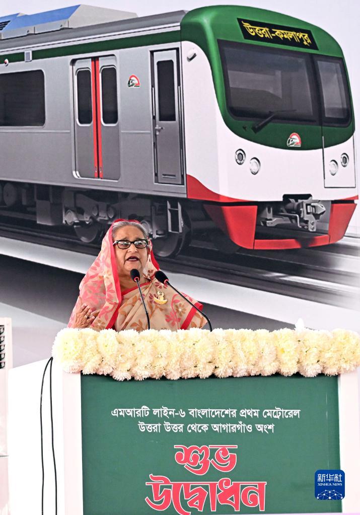 12月28日,在孟加拉國首都達卡,孟加拉國總理哈西娜出席該國首條輕軌開(kāi)通儀式。