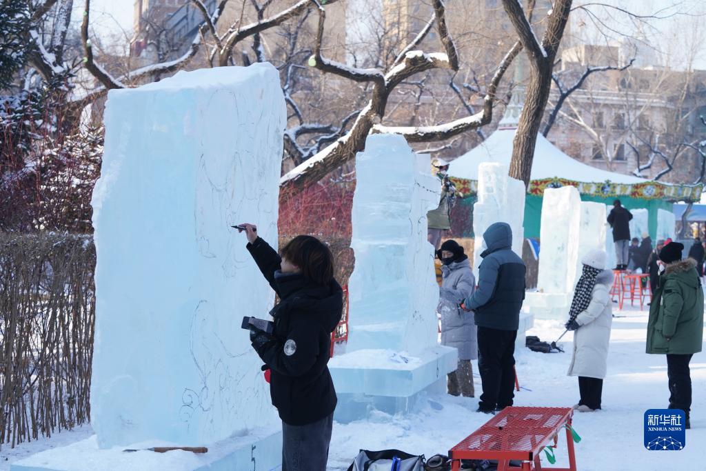 12月29日,參賽選手在進(jìn)行冰雕創(chuàng )作。