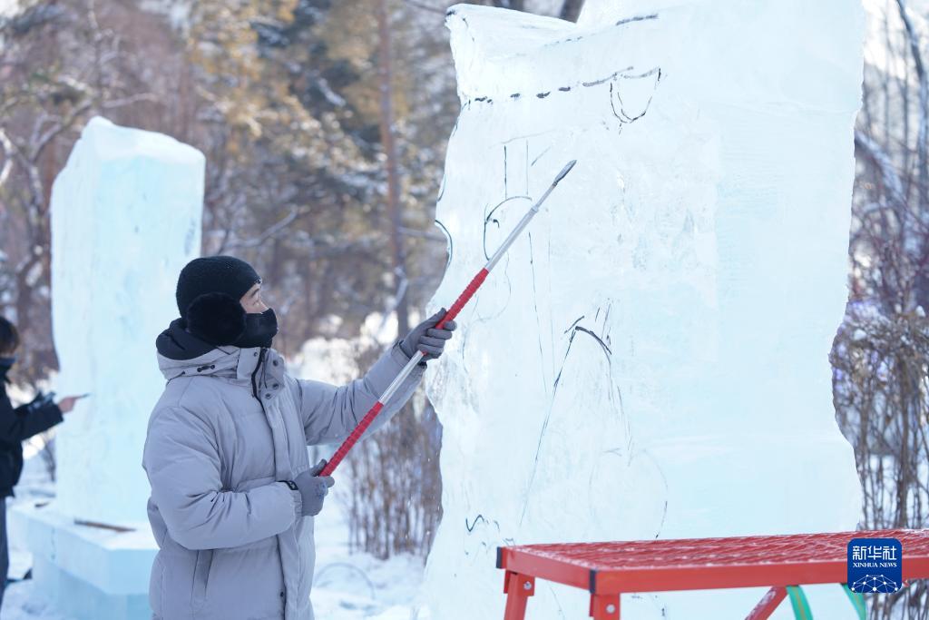 12月29日,參賽選手在進(jìn)行冰雕創(chuàng )作。