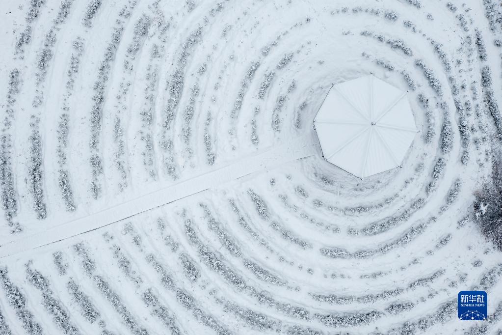 這是12月29日在貴州省畢節市百里杜鵑管理區普底鄉迎豐村茶園拍攝的雪景(無(wú)人機照片)。