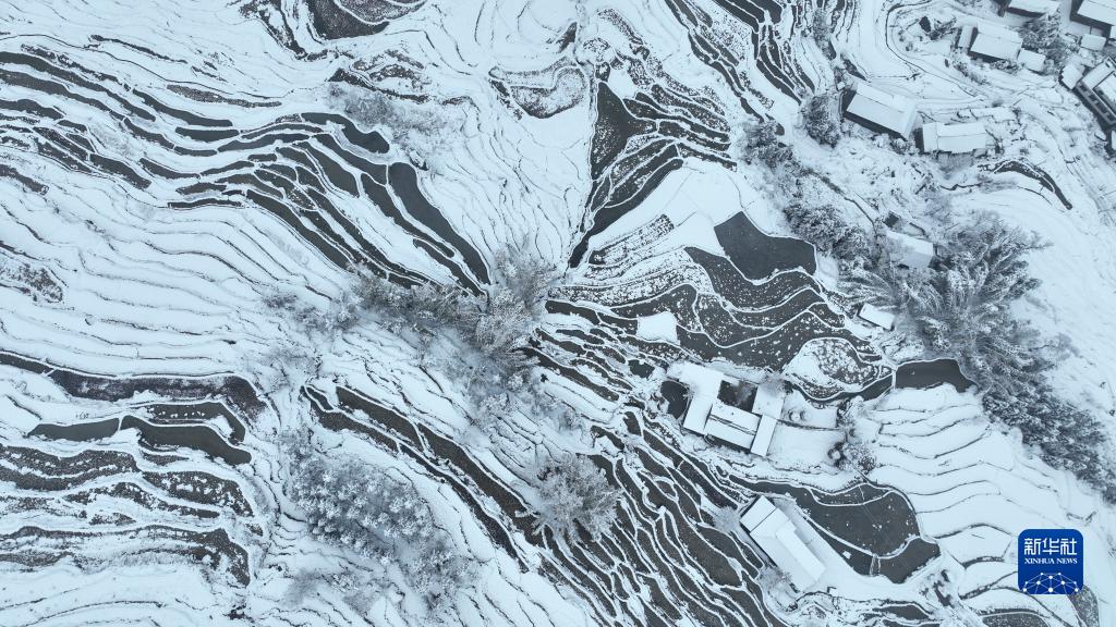 這是12月29日在湖南省婁底市新化縣紫鵲界梯田拍攝的雪后景色(無(wú)人機照片)。