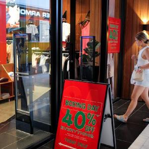 12月26日,在新西蘭奧克蘭,顧客走進(jìn)一家打折店鋪。