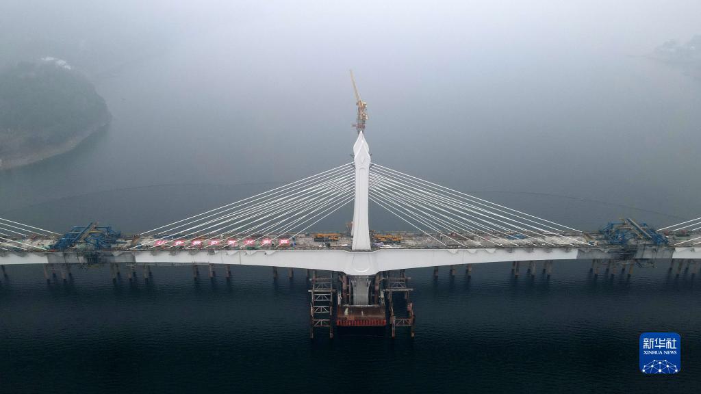這是合龍后的中國鐵建大橋局池黃鐵路太平湖特大橋(12月29日攝,無(wú)人機照片)。