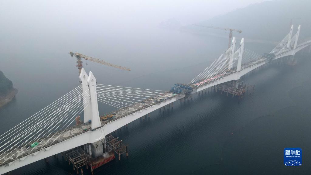 這是合龍后的中國鐵建大橋局池黃鐵路太平湖特大橋(12月29日攝,無(wú)人機照片)。