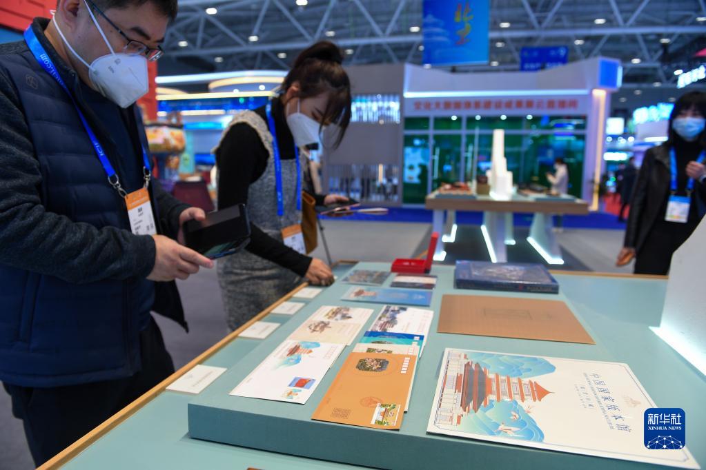 12月29日,參觀(guān)者在中國國家版本館展區了解文創(chuàng )產(chǎn)品。