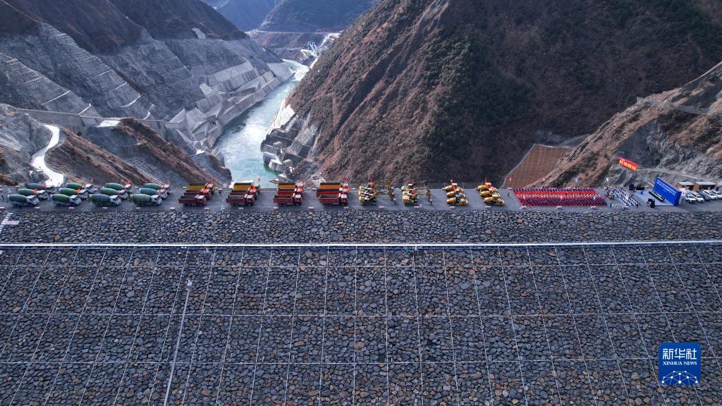 12月29日,雅礱江兩河口混合式抽水蓄能電站開(kāi)工儀式在四川雅江兩河口水電站大壩上舉行(無(wú)人機照片)。