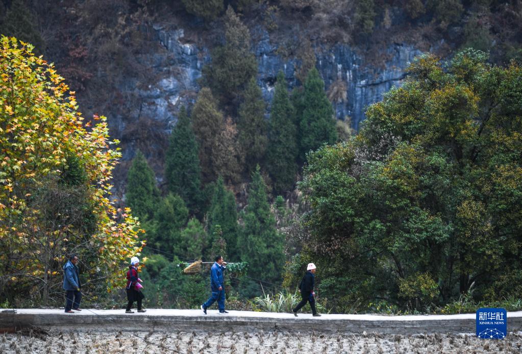 劉開(kāi)福(右二)與村民移栽油菜苗(2022年11月14日攝)。
