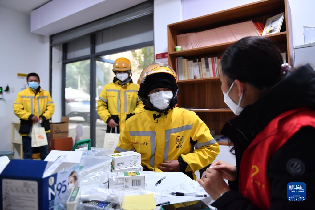 12月29日,在長(cháng)沙市天心區文源街道天鴻社區的“紅色之家”,外賣(mài)騎手排隊領(lǐng)取藥品。