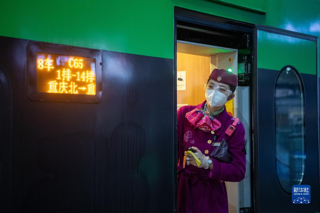 12月30日,乘務(wù)員在首趟重慶東環(huán)鐵路列車(chē)車(chē)廂內等候發(fā)車(chē)。