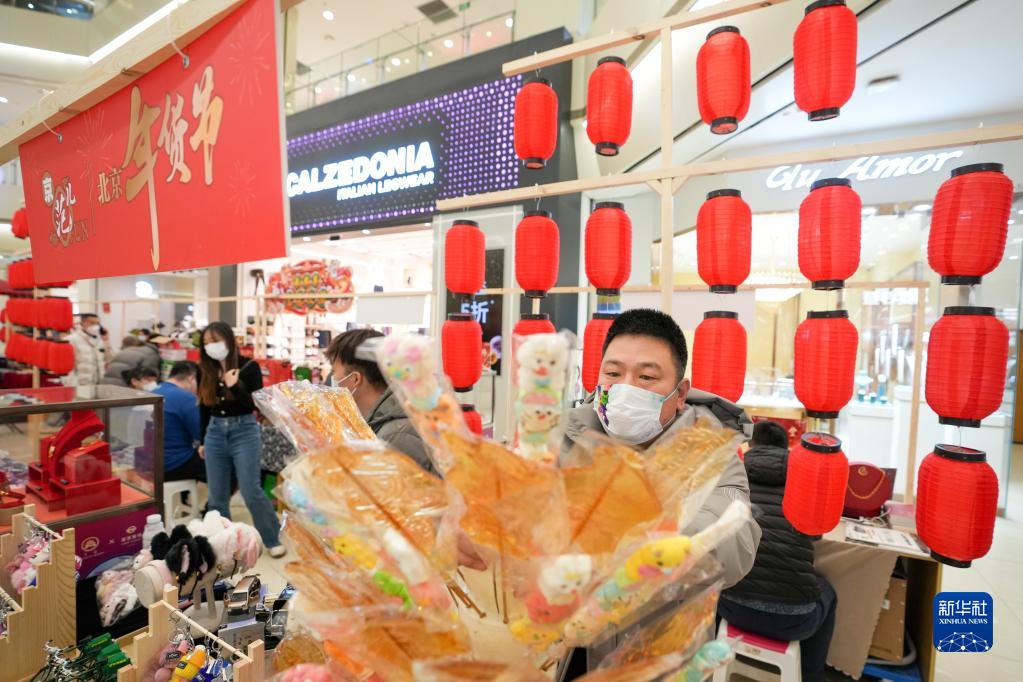 12月30日,在北京年貨節啟動(dòng)活動(dòng)的年貨市集區,一位商戶(hù)在整理攤位。