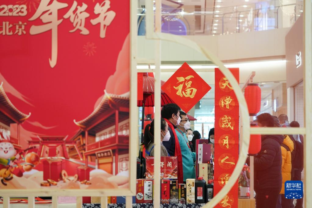 12月30日,在北京年貨節啟動(dòng)活動(dòng)的年貨市集區,商戶(hù)在展示年貨商品。