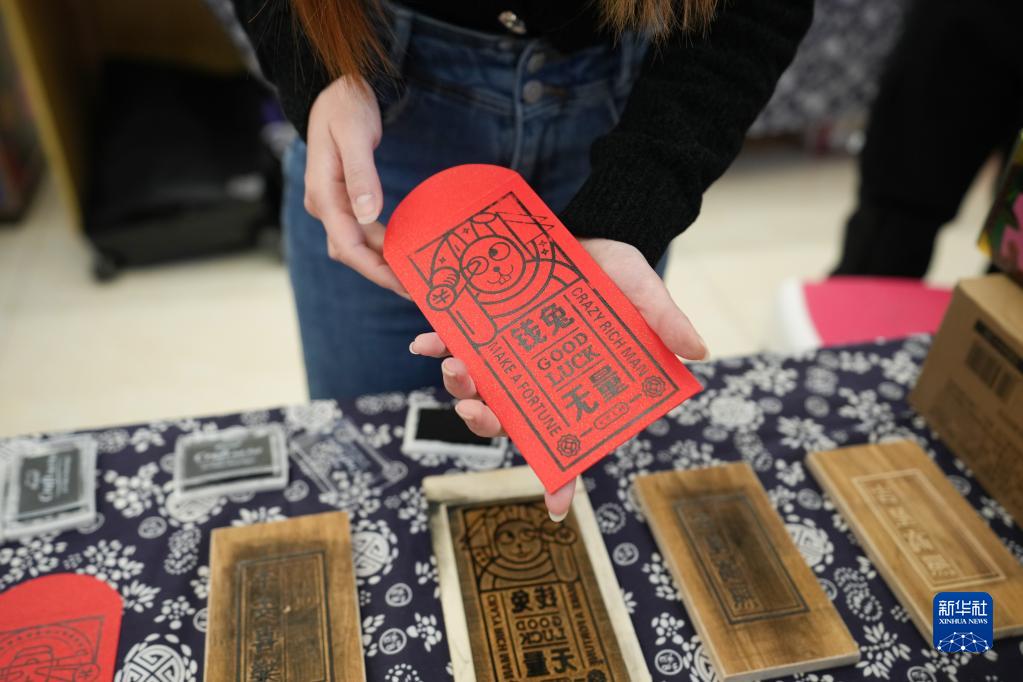 12月30日,在北京年貨節啟動(dòng)活動(dòng)的年貨市集區,一位商戶(hù)展示現場(chǎng)制作的紅包。