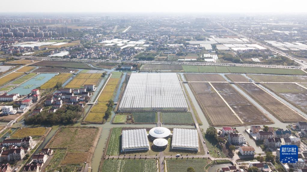 位于上海浦東新區宣橋鎮腰路村的清美數字化蔬菜基地(12月7日攝,無(wú)人機照片)。