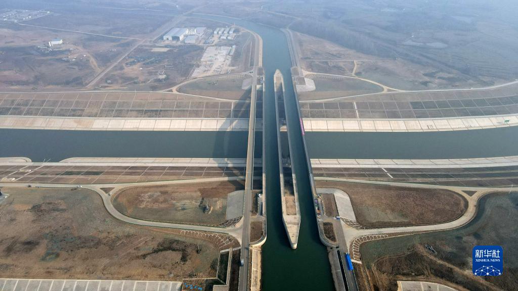 12月30日,中鐵四局參建的引江濟淮淠河總干渠渡槽通航(無(wú)人機照片)。淠河總干渠從引江濟淮運河上凌空而過(guò),呈現出河上有河的“水上立交”景象。