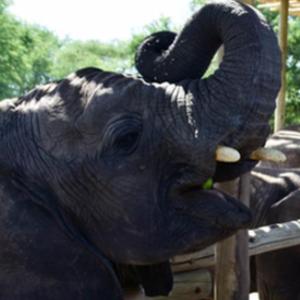 12月26日,在博茨瓦納東北部馬翁的大象孤兒院,游客投喂幼象。