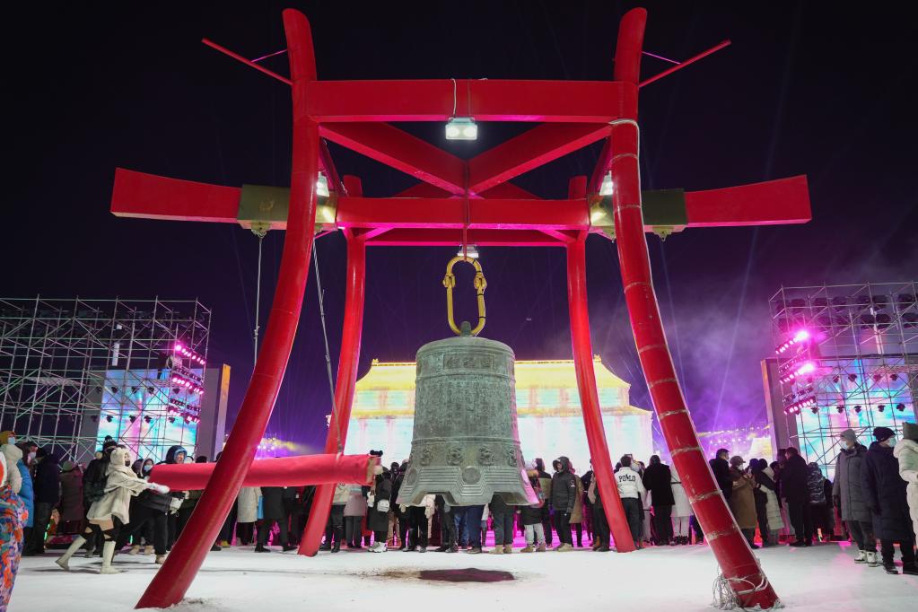 當日,許多市民和游客來(lái)到哈爾濱冰雪大世界園區游玩,迎接新年到來(lái)。