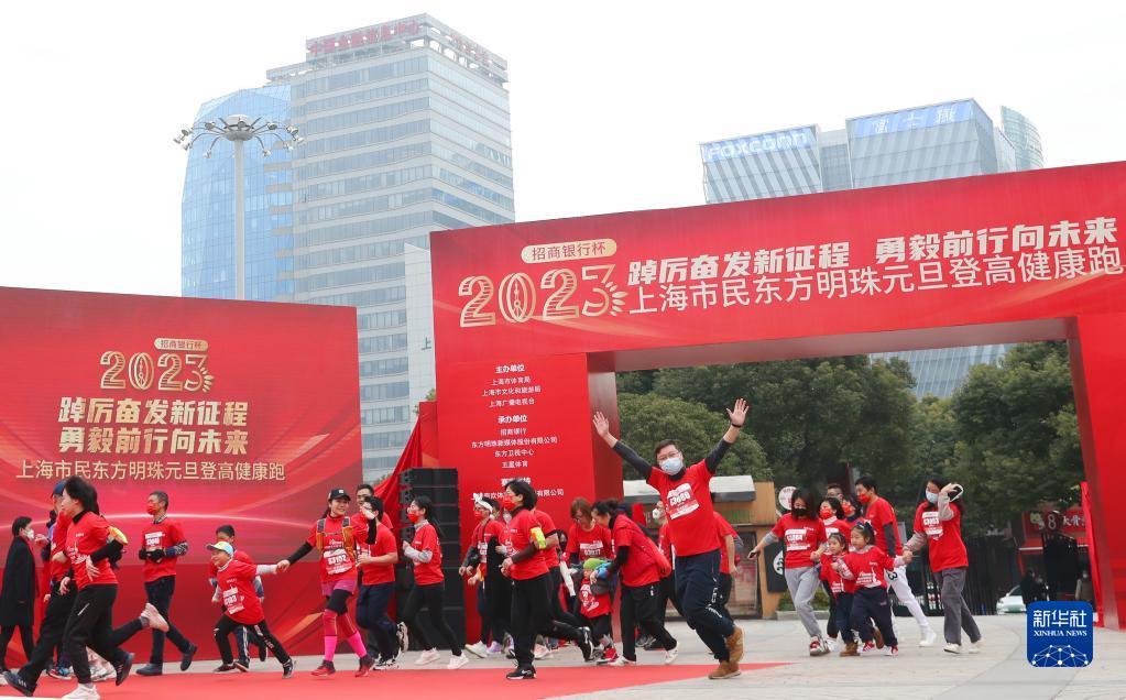 1月1日,在上海市,參加東方明珠元旦登高健康跑的選手從起跑點(diǎn)出發(fā)。