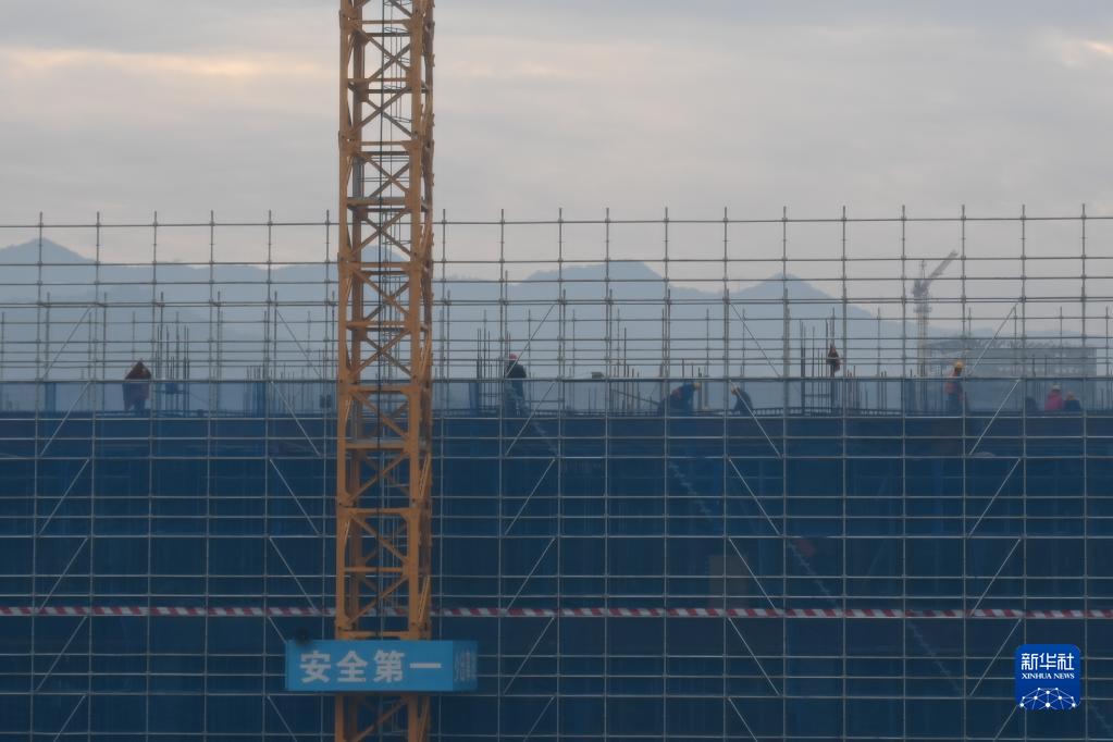 1月1日清晨,中建三局建設者在位于浙江省杭州市富陽(yáng)區銀湖生物產(chǎn)業(yè)園總承包工程項目現場(chǎng)施工。
