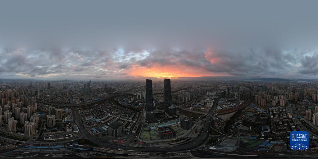 1月1日在云南省昆明市拍攝的日出(無(wú)人機全景照片)。