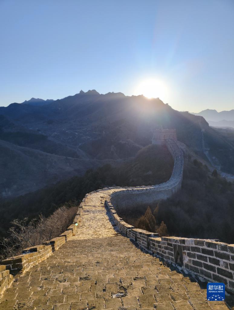 1月1日在北京密云古北水鎮司馬臺長(cháng)城拍攝的日出。