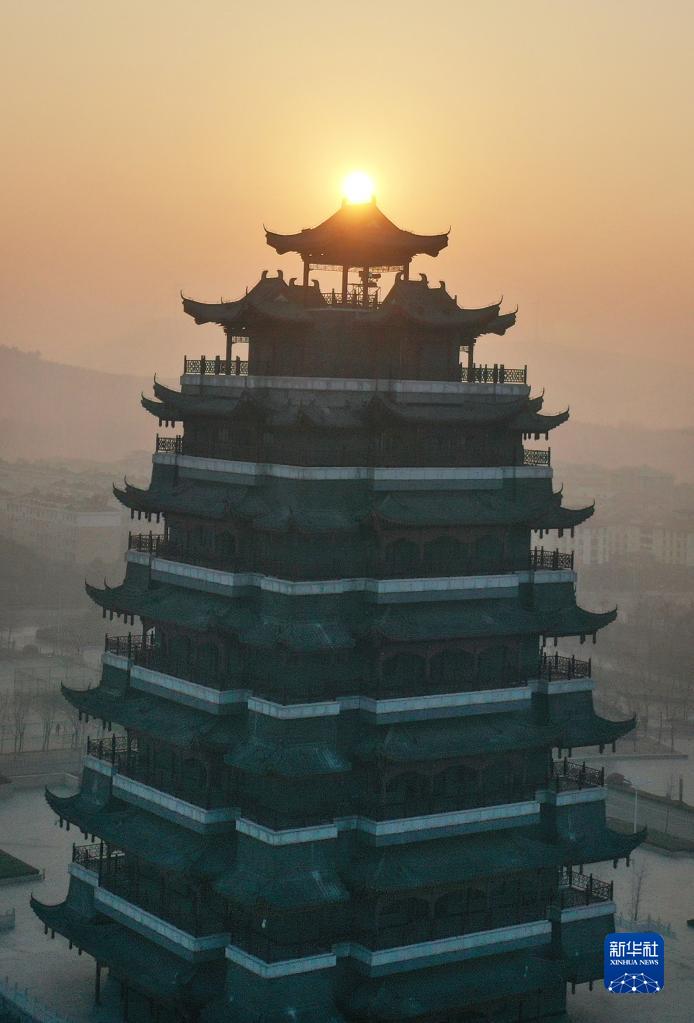 1月1日,山東棗莊的翼云閣沐浴在晨光中。