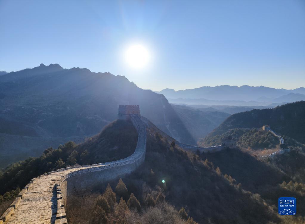 1月1日在北京密云古北水鎮司馬臺長(cháng)城拍攝的日出。