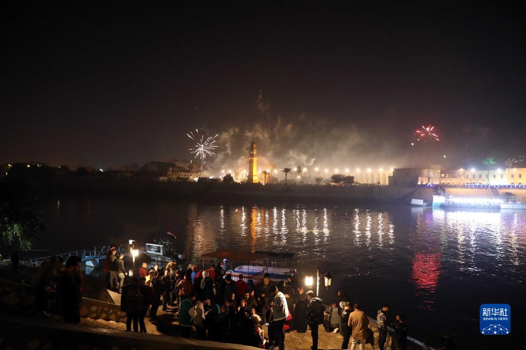 這是2023年1月1日在伊拉克首都巴格達拍攝的新年煙花。