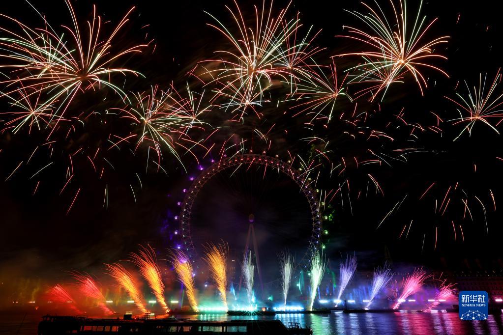 這是2023年1月1日在英國倫敦拍攝的新年煙花。