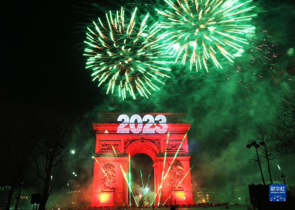 這是2023年1月1日在法國巴黎凱旋門(mén)拍攝的新年焰火。