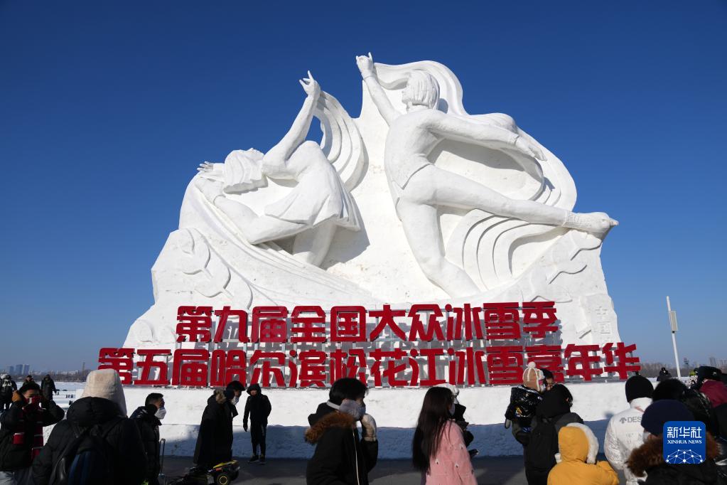 1月1日,游客進(jìn)入哈爾濱松花江冰雪嘉年華園區游玩。