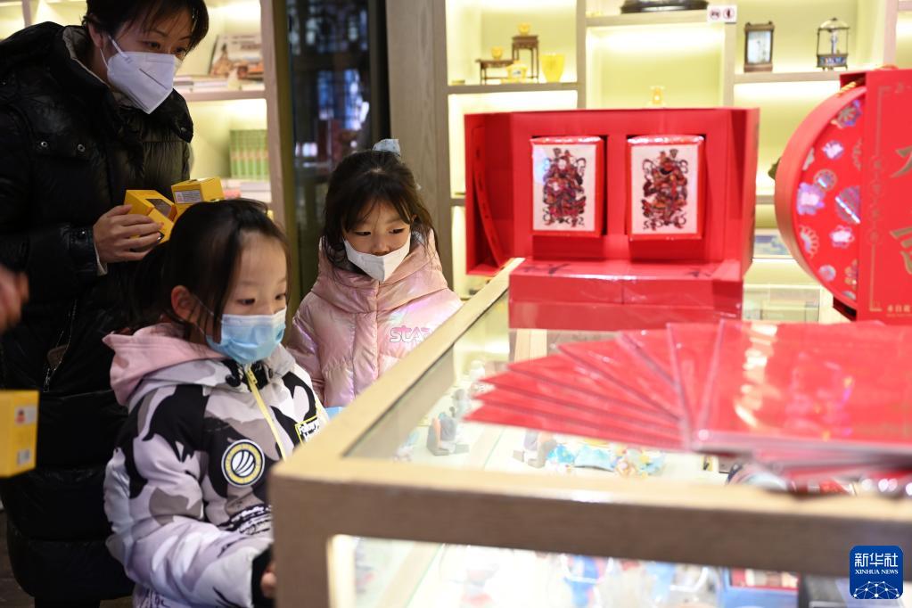 1月1日,游客在故宮絳雪軒文創(chuàng )商店內選購商品。