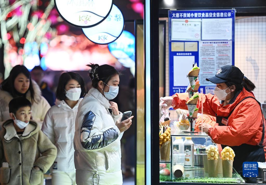 2022年12月30日,游客在大唐不夜城步行街選購小吃。