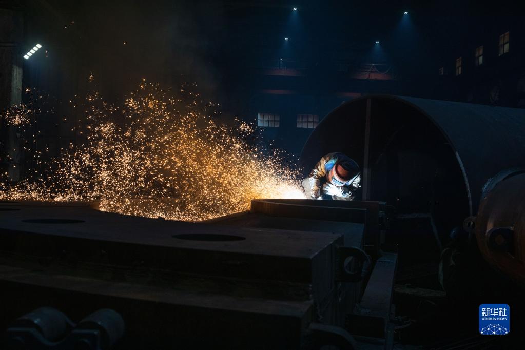 1月1日,在哈電集團哈爾濱電機廠(chǎng)有限責任公司生產(chǎn)車(chē)間,工人在生產(chǎn)作業(yè)。