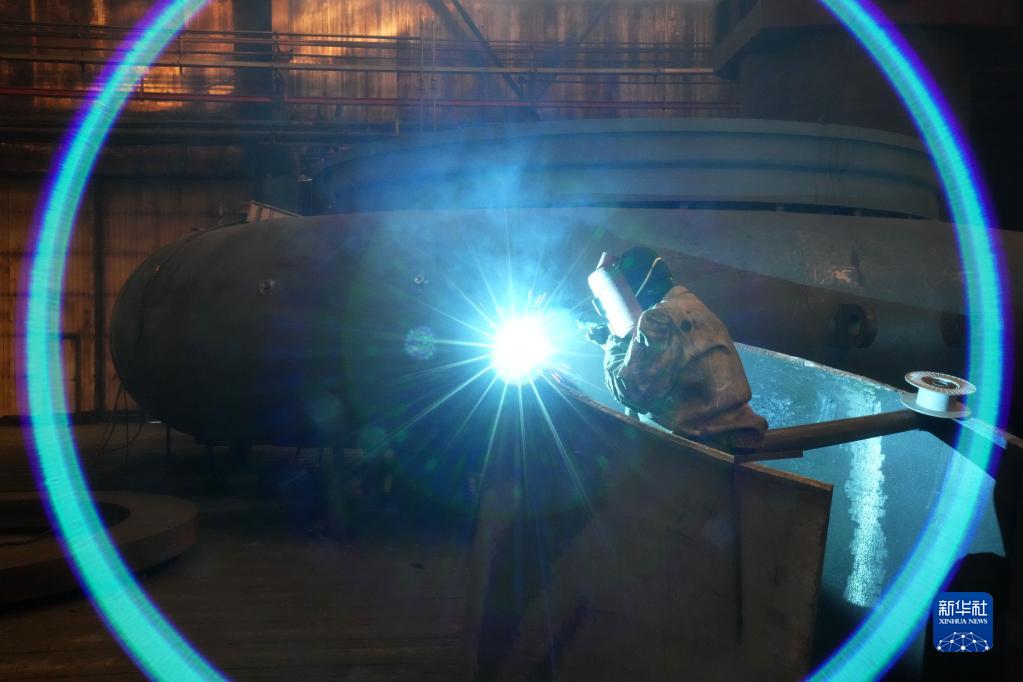 1月1日,在哈電集團哈爾濱電機廠(chǎng)有限責任公司生產(chǎn)車(chē)間,工人在作業(yè)。