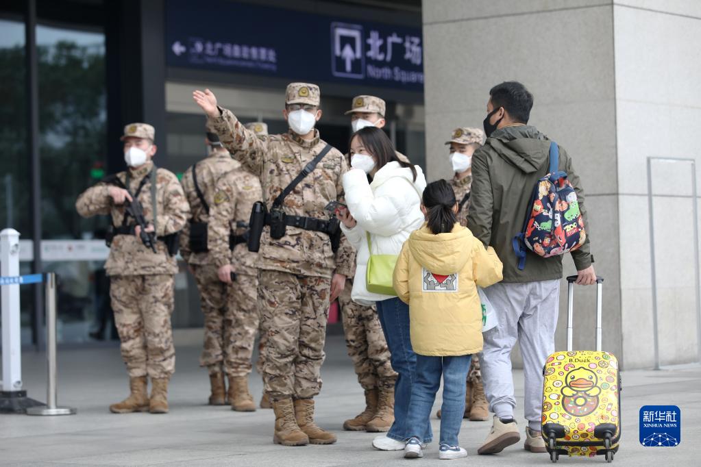 1月1日,武警安徽總隊合肥支隊官兵在合肥南站為過(guò)路旅客提供幫助。