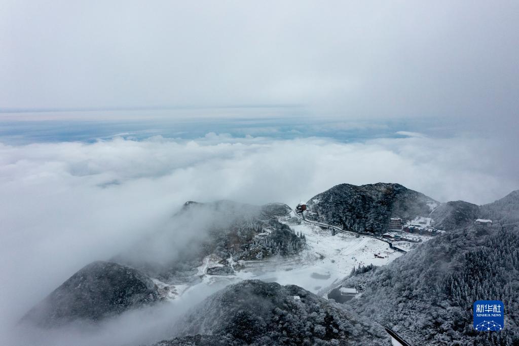 這是1月1日拍攝的金佛山雪景(無(wú)人機照片)。