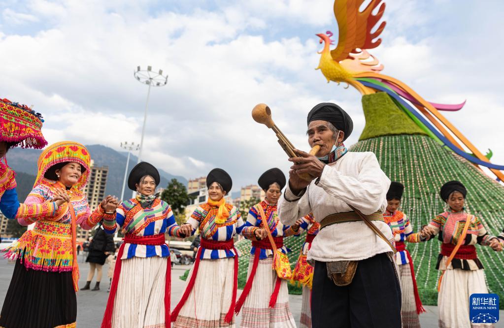 1月1日,在四川省德昌縣濱河公園,當地的傈僳族群眾載歌載舞迎接新年的到來(lái)。