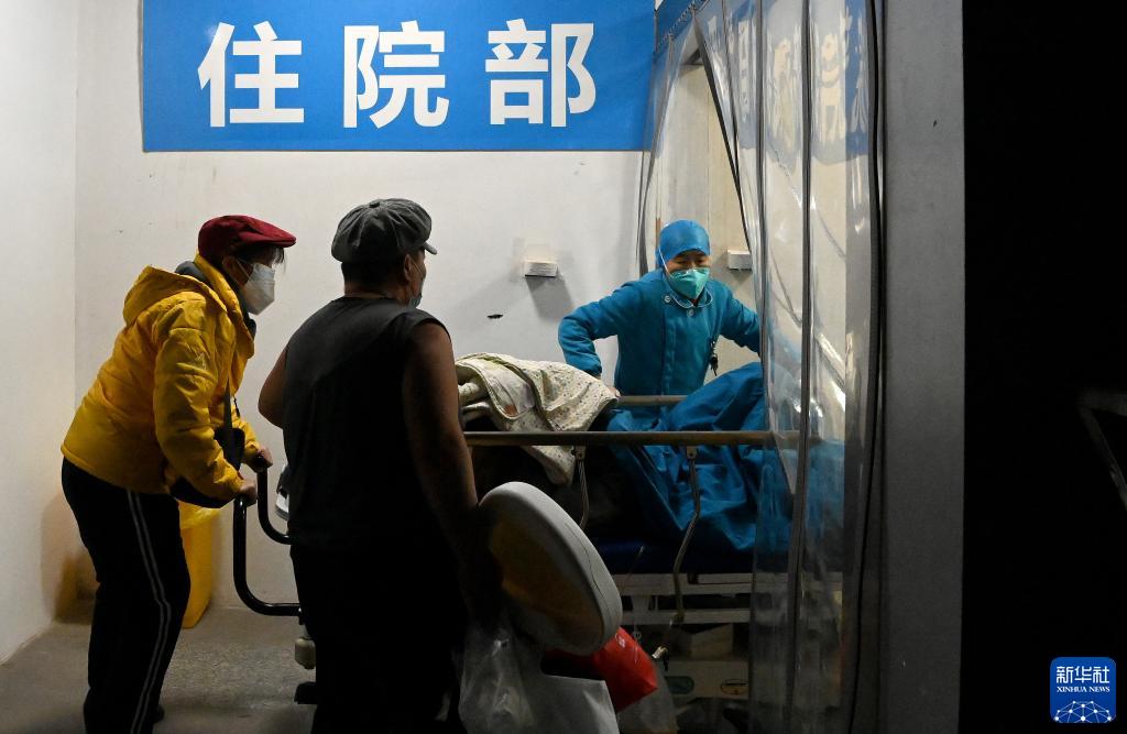 2022年12月31日,西安交通大學(xué)第一附屬醫院急診科的醫務(wù)人員幫助家屬將患者轉往住院部治療。