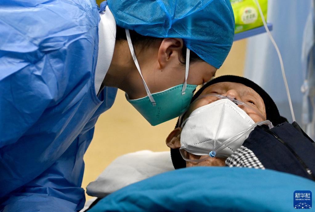 2022年12月31日,西安交通大學(xué)第一附屬醫院急診科的醫務(wù)人員靠近一名聽(tīng)力不好的患者進(jìn)行問(wèn)詢(xún)。
