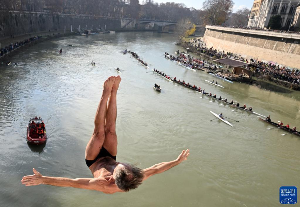 2023年1月1日,一名男子從意大利羅馬的加富爾橋躍入臺伯河中。