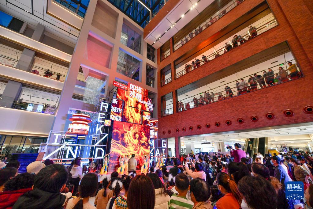 1月1日,市民在天津金茂匯商場(chǎng)內觀(guān)看演出。