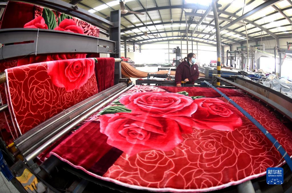 1月3日,工人在江蘇連云港高新區海州工業(yè)園的一家毛毯企業(yè)忙碌。