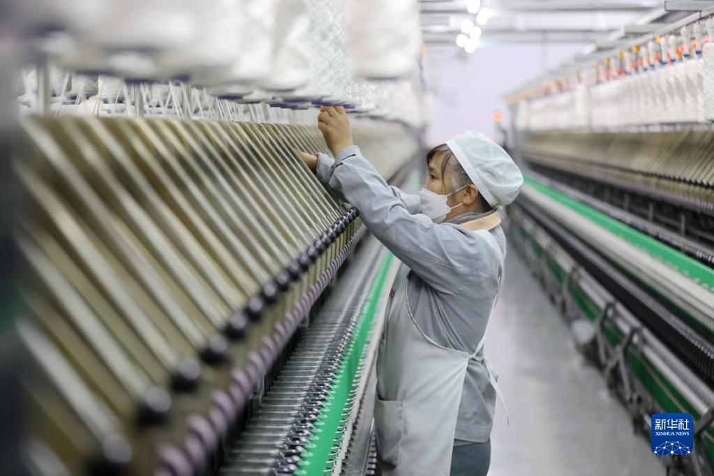 1月3日,在浙江省湖州市德清縣鐘管鎮一家紡織企業(yè),工人在車(chē)間作業(yè)。