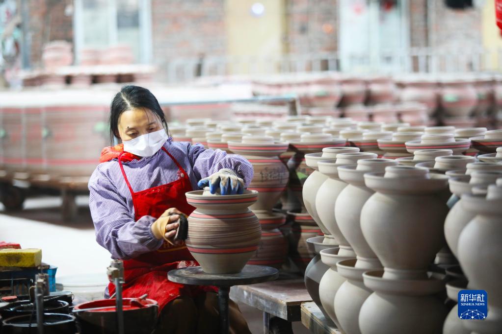 1月3日,重慶梁平區一家陶瓷有限公司的工人在加工泡菜壇。