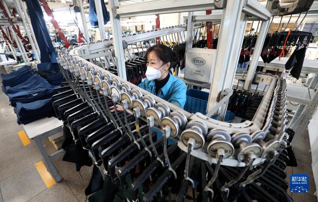 1月3日,在河北省石家莊市井陘縣一家服裝企業(yè),工人在生產(chǎn)線(xiàn)上工作。
