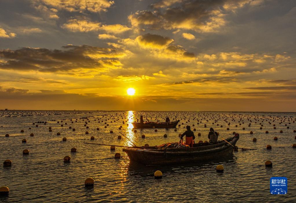 當日,在山東省榮成市尋山街道愛(ài)倫灣海洋牧場(chǎng),漁民駕駛漁船在海上忙碌著(zhù),呈現一幅“海上冬耕”的畫(huà)面。