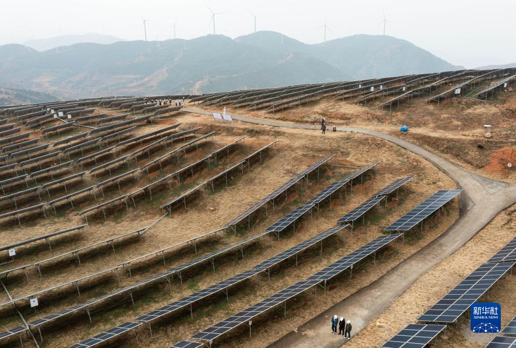 俯瞰雅礱江會(huì )理新能源有限責任公司黎州光伏電站發(fā)電場(chǎng)一角(無(wú)人機照片,1月2日攝)。
