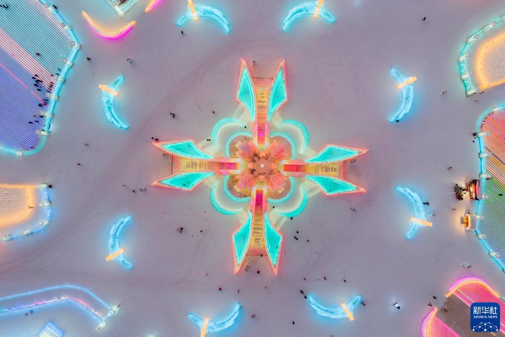 冬日夕陽(yáng)下,第24屆哈爾濱冰雪大世界園區流光溢彩,夢(mèng)幻壯觀(guān),來(lái)自天南海北的游客在園區內暢享冰情雪趣。