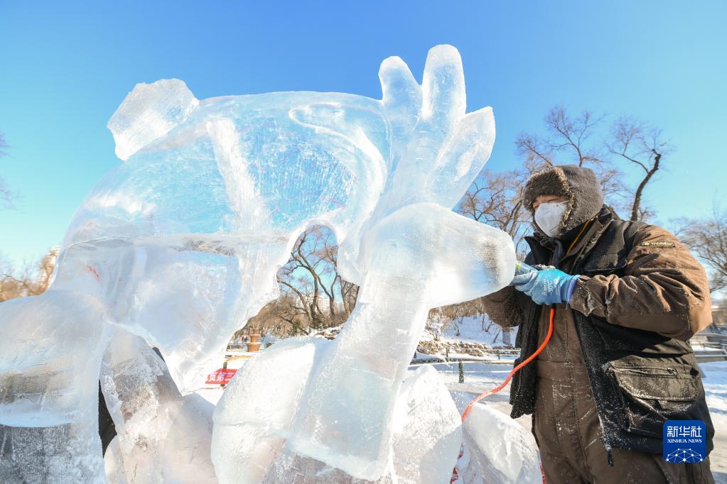 哈爾濱:冰雕高手“馴”冰秀技藝